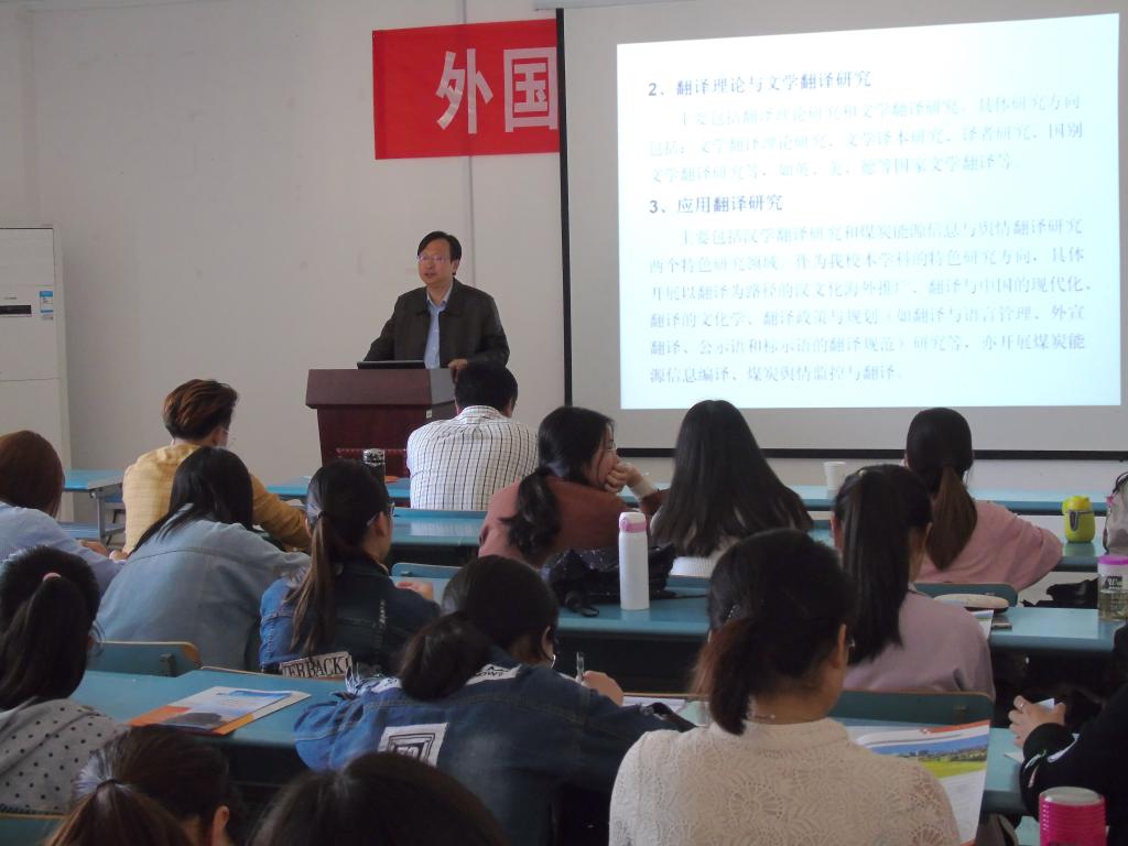 座谈会后,吴格非一行向学院三年级的本科生详细介绍了中国矿业大学外国语言文化学院外国语言文学一级硕士点的基本情况,重点介绍了学科优势、师资力量、研究生培养特色以及奖助学金政策,并对硕士研究生招生政策进行了介绍,并就考研事宜和同学们进行了充分的交流。