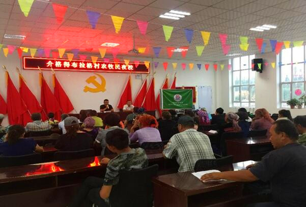 介格得布拉格村隶属新疆维吾尔自治区博乐市乌图布拉格镇,是蒙古族、汉族、哈萨克族、维吾尔族、回族等多民族居住村,村里百分之八十的村民不会流利地使用普通话。实践团队员利用每周三的村农牧民夜校向当地200多户村民们教授普通话,利用语言文字游戏、阅读写作训练、演讲、诵读、对话等多种形式,激起村民们的学习兴趣,免费发放学习普通话的资料200余册,宣传普及普通话。活动期间,还向当地村民介绍学校建设发展情况,宣讲党的十九大报告中提出的乡村振兴战略和脱贫攻坚新思想、新目标和新征程。