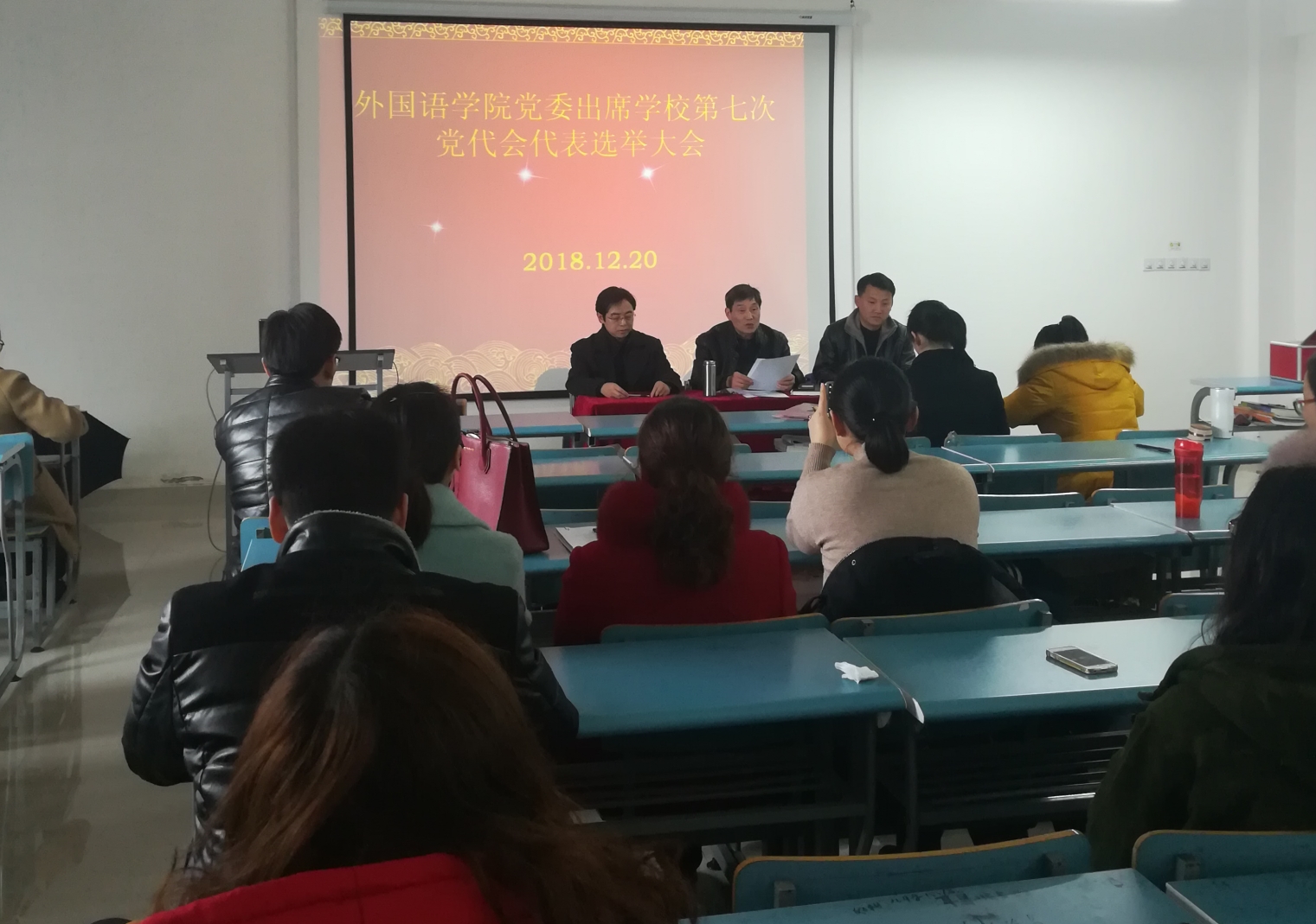 根据学校第七次党代会代表选举工作安排,12月20日下午,外国语学院党委在崇智楼B229召开全院党员大会,选举产生外国语学院参加安徽理工大学第七次党代会的代表。会议由学院党委书记张宣传主持。