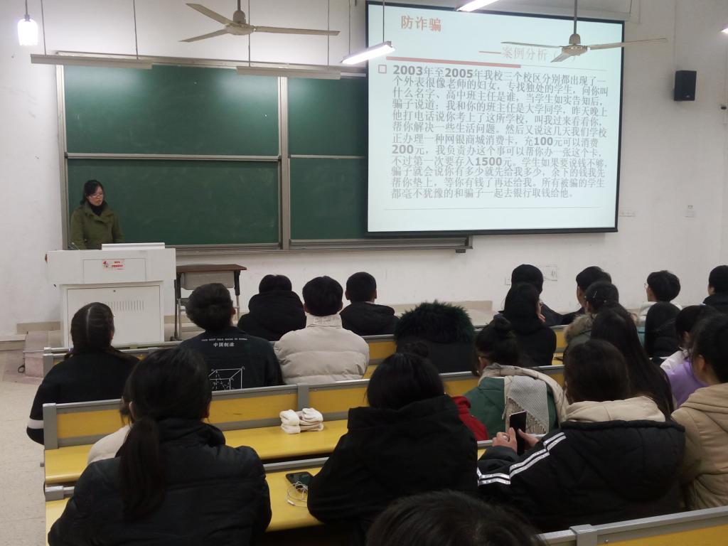 12月22日晚,为贯彻学校2018年岁末年初安全工作有关要求,进一步提升在校学生的安全防范意识,增强自我保护能力,外国语学院在明理103教室举办面向全院近百名学生干部的校园安全教育讲座。讲座由院团委书记、辅导员杨钰晗主讲。