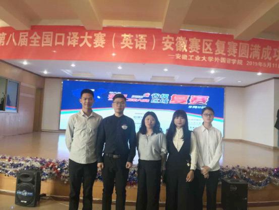 5月11日,第八届全国口译大赛(英语)安徽赛区复赛在安徽工业大学举行,来自30余所省内高校的110名同学参加了比赛。我校外国语学院英语2015级1班学生曹波、英语2016级3班刘雯两位同学在比赛中分别取得一等奖和三等奖,外国语学院教师程仲荣获大赛优秀指导教师奖,为学校赢得荣誉。其中,曹波同学以全省第三名晋级六月份的华东地区比赛。这也是我校在此项比赛参赛历史上的最好成绩。