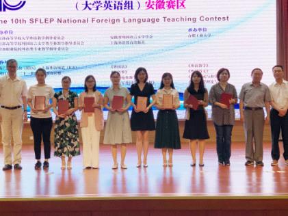 本次大赛由教育部高等学校外国语言文学类专业教学指导委员会、教育部高等学校大学外语教学指导委员会、安徽省外国语言文学学会和上海外语教育出版社主办,合肥工业大学承办,共有来自省内24所高校的60余位教师同台竞争。本次比赛设综合组、试听组、跨文化组等3个组别,分复赛和决赛2个环节。复赛为英语授课,决赛包括英语说课和问题回答2项内容。我校3名教师的出色表现给同行和评委专家们留下了深刻印象,通过比赛展示了我校教师扎实的英语教学水平。