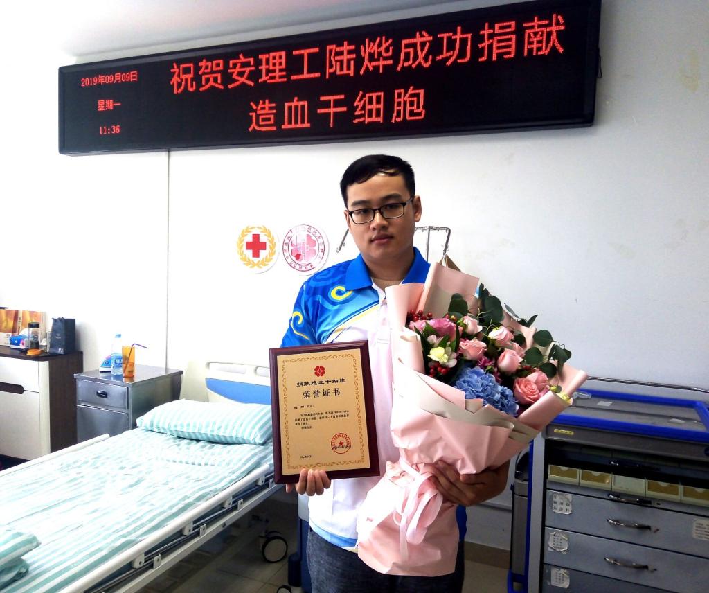 我院学生陆烨成功捐献造血干细胞,成为安徽省第191例捐献者