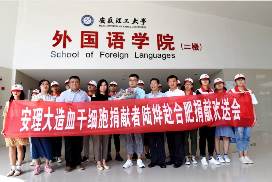 2019年9月9日上午,安徽理工大学外国语学院2016级日语专业学生陆烨在安徽省立医院成功捐献造血干细胞,挽救一名5岁急性白血病患儿。陆烨成为安徽省第191例、淮南市第21例、安徽理工大学第5例造血干细胞捐献者。据安徽省红十字会统计,截至目前,安徽理工大学已成为全省高校中造血干细胞捐赠者最多的高校。
