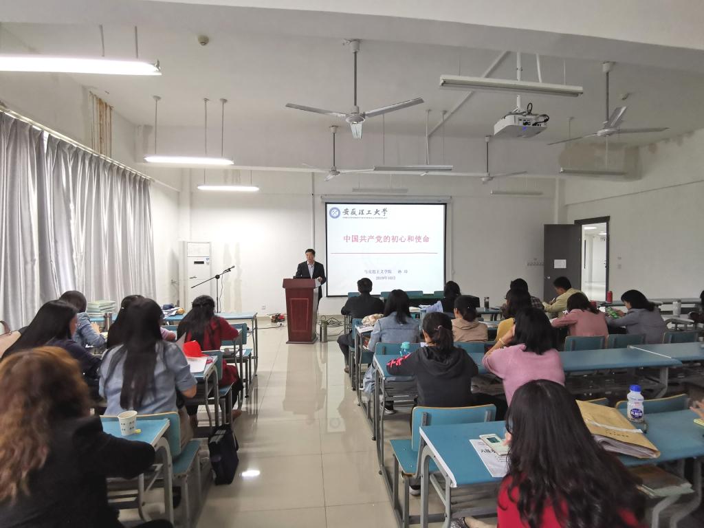 10月11日下午,外国语学院党委在学院楼B229室举办“不忘初心、牢记使命”主题教育专题党课。马克思主义学院院长、党总支书记孙功教授受邀作专题报告,院党委书记张宣传主持报告并做总结,学院全体党员参加。