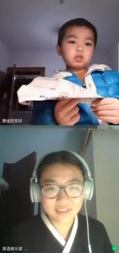 外国语学院志愿者李雨昕与袁骁勇小朋友线上交流