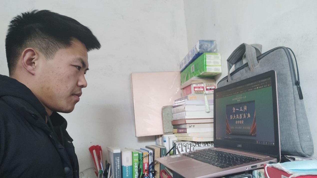 2017级英语2班学生党员戚鹏坤在观看战“疫”思政大课