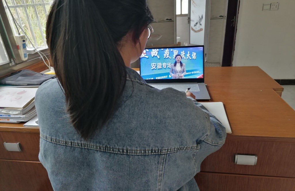 4月23日下午,外国语学院组织全院学生观看由中共安徽省委宣传部、中共安徽省委教育工委、安徽省教育厅与人民网联合组织的全省大学生“同上一堂战‘疫’思政大课”网络思政课。全院本科生、研究生都通过观看直播和视频回放的方式参与本次活动。