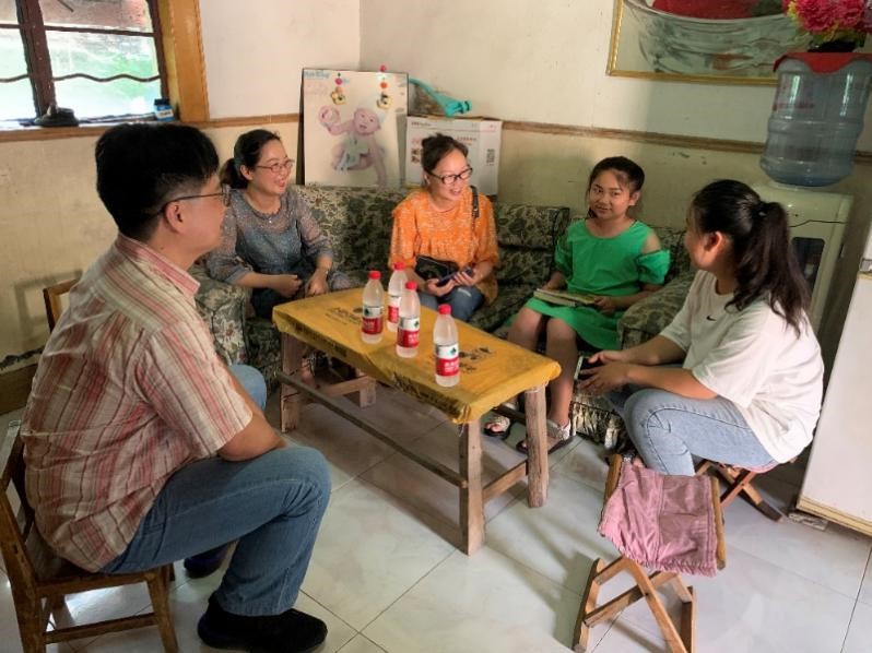 当天下午,外国语学院公外二系党支部一行4人和工农小学党支部一行4人在淮南市八公山区教体局机关党支部书记王莉的陪同下,深入留守儿童家中进行走访,开展一对一助学帮扶,还向她们送去了牛奶、儿童读物、文具等生活和学习用品。活动中,党员们详细了解她们生活学习情况,提醒她们提高自我保护意识,并结合与留守儿童就英语学习方法进行了交流。陈丹、王萍两位老师分别与留守儿童家长互加微信,以便能定期提供及时有效的英语学习咨询和支持。