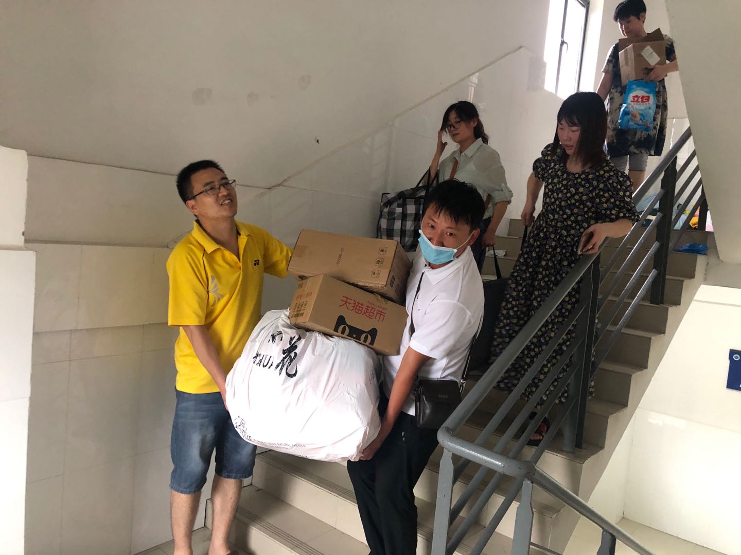 前往陕西省西安市继续攻读硕士研究生的2016级学生党员季娇娇同学说,“没想到这次返校有这么多老师来宿舍楼帮我打包行李、为我送行,我还能穿上学士服在宿舍楼前与老师、导师们一一合影留念,我的大学、我的青春在安理校园里没有遗憾了!今天从这里出发,我会带着感恩的心,向教师党员们学习,不忘初心,牢记使命,努力成才!”前往湖北省孝感市工作的2016级日语专业符宝鸿同学泪眼婆娑地在宿舍门前和朱亚青老师说:“男儿有泪不轻弹,非常不舍得离开学校,安徽理工大学的环境和敬爱的老师们教给我许多求学、做人和做事道理,我以后一定会常回来看看!”