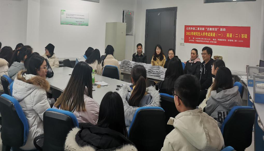 12月13日,为了给2021届考研学生提供有针对性的答疑和指导,外国语学院党委组织师生党员在崇智楼A203开展“考研学生答疑交流会”主题党日活动。