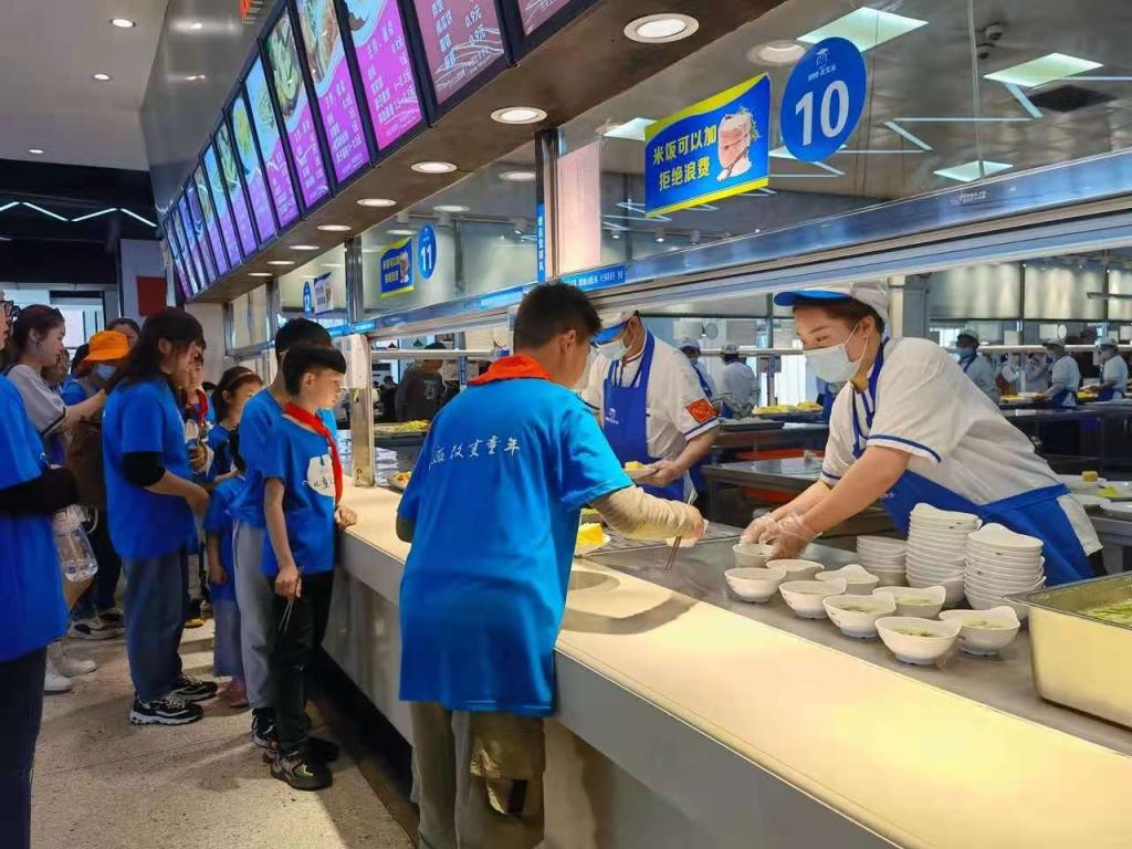 尝一顿食堂饭。中午,“小食客们”在义苑食堂二楼餐厅兴奋又文明地取餐端汤,有的和大学生哥哥姐姐们激动地混坐在一张餐桌上边吃边聊天,有的结伴边吃边憧憬若干年后自己的大学生活。值得一提的是,小食客们全部都“光盘行动”,谨记“一粥一饭,当思来处不易;半丝半缕,恒念物力维艰”。午餐结束后,小志愿者们和工作人员在食堂门口集合列队,徒步鸿烈大道走向天工门,依依不舍地离开了大学校园。陪同参加的监护人也感触颇深,表示本次活动增强了青少年对大学学习和生活的了解,也使自己在教育子女方面有了更宽阔的视野、更精准的定位。