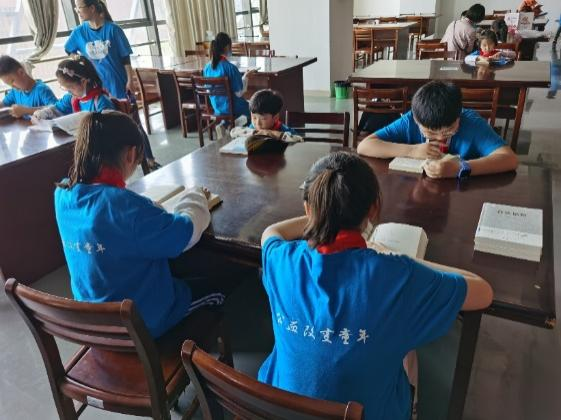 进一次图书馆。在至善书院图书馆里,小读者们整齐、有序地拾阶而上。小读者们不时对走廊上、自修室里刻苦学习的大学生们流露出尊敬和钦佩的眼神。在四楼阅览室里,小读者们有序散开找寻自己喜欢的书。大学里丰富的藏书大大激发了小读者们的阅读兴趣,人人沉浸其中、享受阅读的快乐。