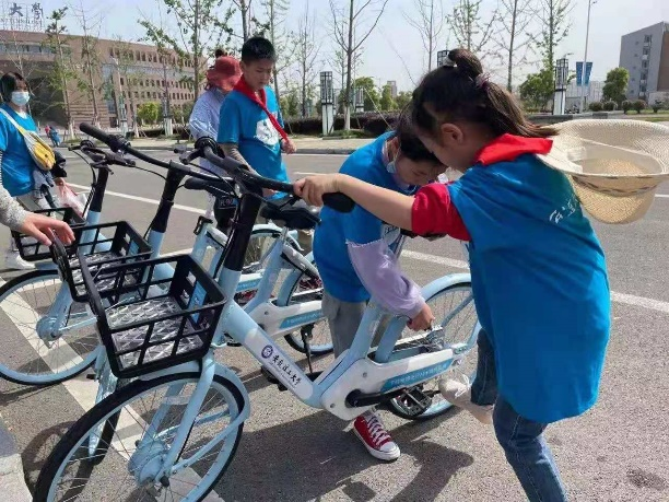 做一次志愿者。公外二系党支部教师党员们引领青少年们一起从天工门徒步到外国语学院。小志愿者们在欣赏校园美景的同时,沿途用自备的一次性手套和垃圾袋捡拾尚未来得及清扫的白色垃圾和随风飘落的枝叶。走到百川门时,小志愿者们还三三两两互相配合着把被风吹倒的共享自行车扶起摆齐。