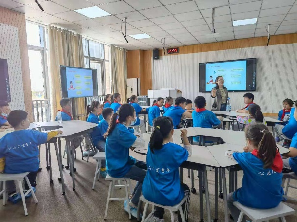 听一节英语课。在百川楼外语学习中心的智慧教室里,外国语学院公外二系的教师党员陈丹为小志愿者们精心准备了一堂丰盛的英语知识与语言技能盛宴。她标准的英语发音、幽默的授课风格让小学习者们领略了大学英语教师的教学魅力。小学习者们的专注与投入、台上台下热烈的互动、智慧教室的外语教育技术应用相得益彰。
