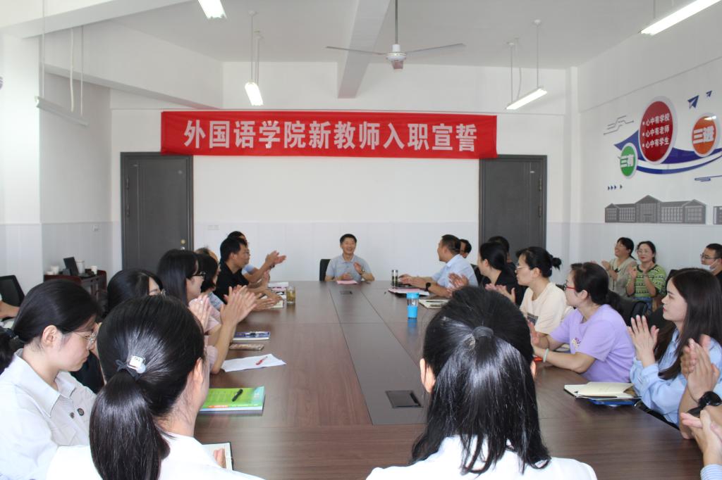 孟祥瑞指出,举行新教师入职宣誓仪式,是贯彻落实习近平总书记关于教育的重要论述精神的务实行动,是激励广大青年教师为党育人、为国育才的重要举措,也是以实际行动迎接党的二十大胜利召开的创新制度安排。他强调,学校正处于创建“双一流”、实现内涵式发展的战略机遇期,对一流人才和创新团队的需求比任何时候都更加迫切;外国语学院正处在积势蓄能、赶超跨越的关键窗口期,对高水平人才队伍和师资队伍的需求比任何时候都更加迫切。