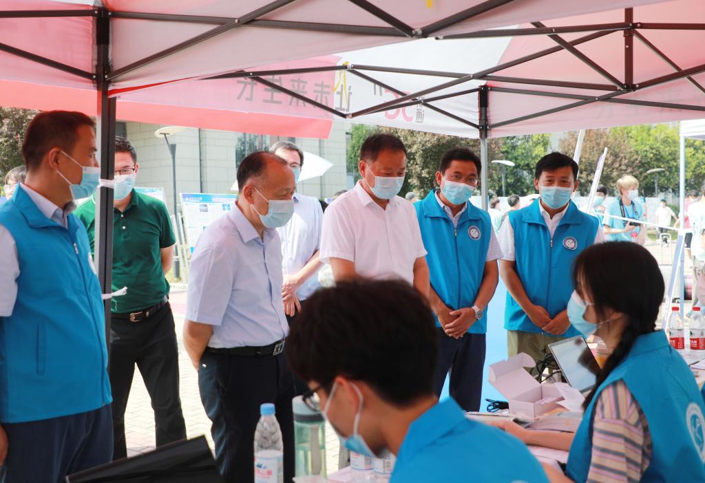 9月11日上午,校党委书记郭永存深入学院迎新现场检查指导工作,看望慰问学院迎新工作人员、学生志愿者以及来自全国各地的新生。校党委常委、副校长宫能平陪同检查指导。