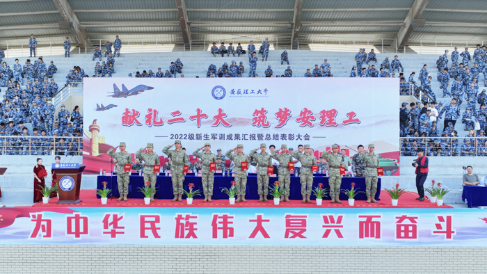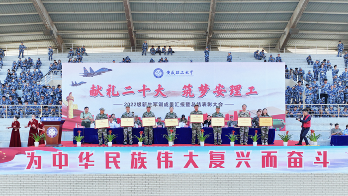 鲁超宣读了学校对军训期间表现突出的优秀学员、优秀内务寝室、优秀教导员、优秀教官、优秀国防教育征文获得者和队列会操优胜单位、军训先进集体的表彰决定,与会校领导为获奖集体和个人颁奖。在全体2022级新生、教官和辅导员的共同努力下,外国语学院获队列会操优胜单位、军训先进集体两项集体荣誉称号,2022级辅导员严安获优秀教导员荣誉称号,王子繁、伍业辉等12人获优秀学员荣誉称号,D4B329、C1C635、C1D416等3个寝室获优秀内务寝室荣誉称号,英语2022-3班李蕊获优秀国防教育征文三等奖,以优异的成绩为开学第一课交上了一份自信而满意的答卷。