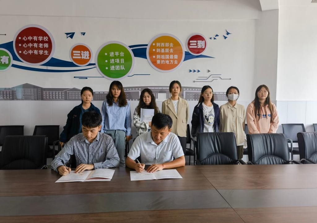 此外,为吸引更多企业和企业家朋友走进学校、了解学校越走越近、越走越亲,9月23日,外国语学院还与宁波亚虎进出口有限公司在崇智楼B203室现场签订了毕业生就业创业基地合作协议。该企业人力资源部门负责人表示将为外国语学院2023届毕业生增设海外贸易类岗位10个。