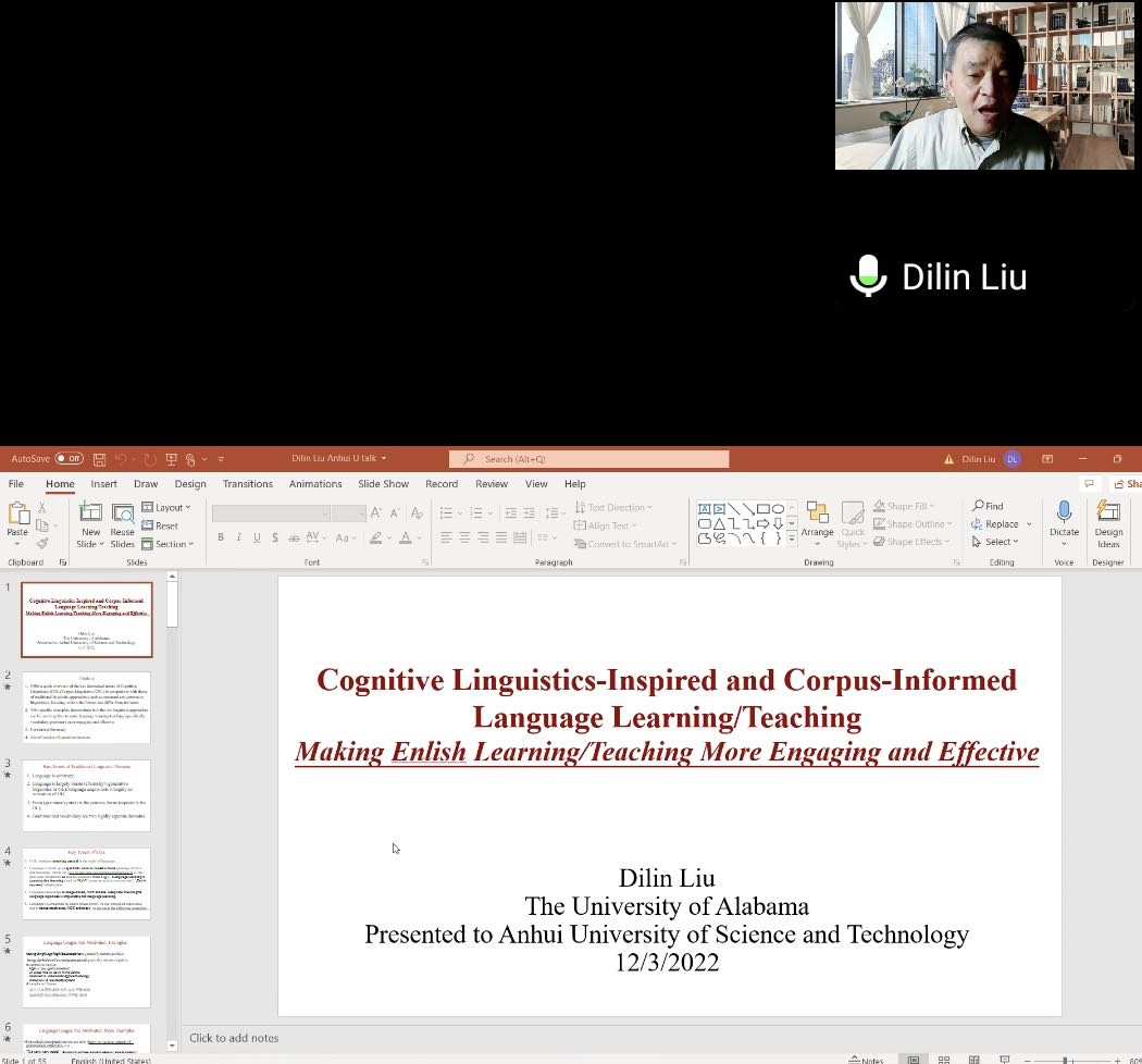 12月3日上午,应社会科学部和我院邀请,美国阿拉巴马大学英语系荣休教授,TESOL项目主要负责人Dilin Liu教授在线为外国语学院师生做了题“Cognitive Linguistics-Inspired and Corpus-Informed Language Learning/Teaching: Making English Learning/Teaching More Engaging and Effective”讲座,讲座由学院副院长周宁主持,外国语学院教师、研究生60余人聆听了讲座。