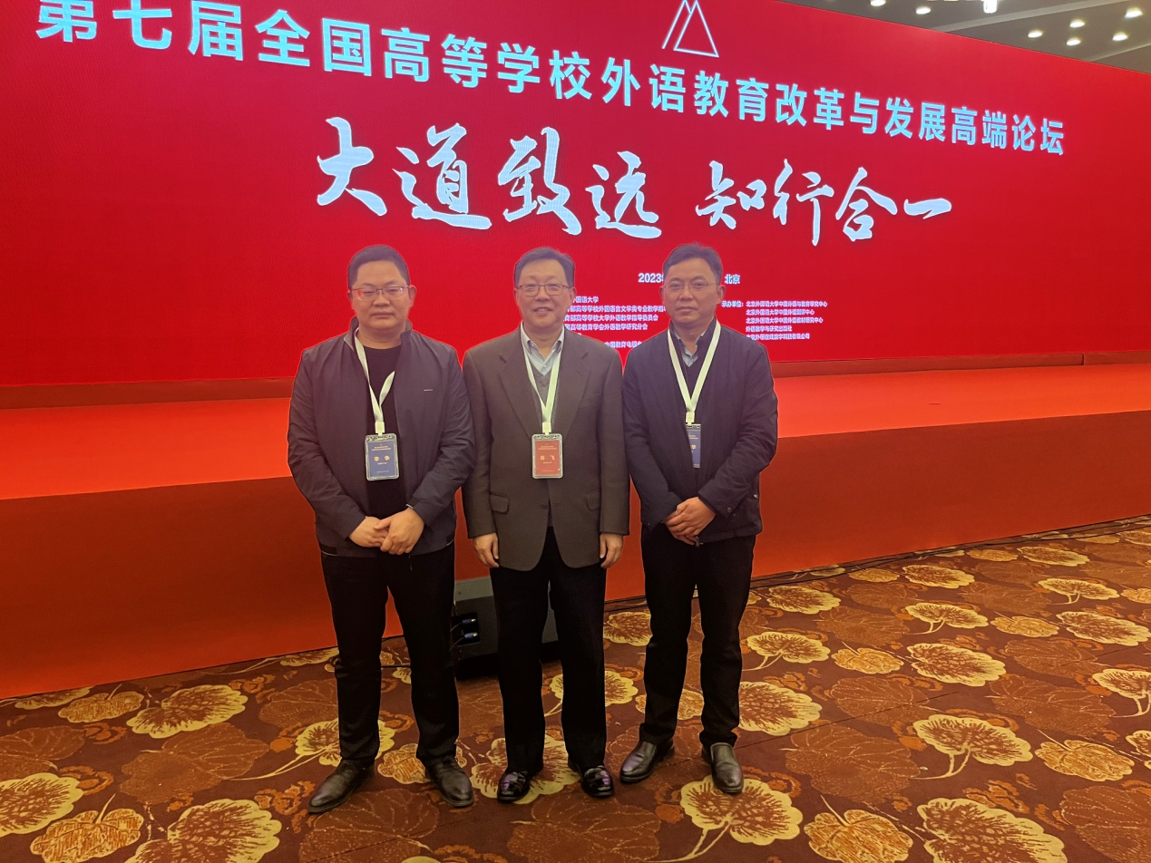 3月24—26日,第七届全国高等学校外语教育改革与发展高端论坛在北京召开,学院院长王宗华、特聘教授肖飞、副院长李争应邀参会。