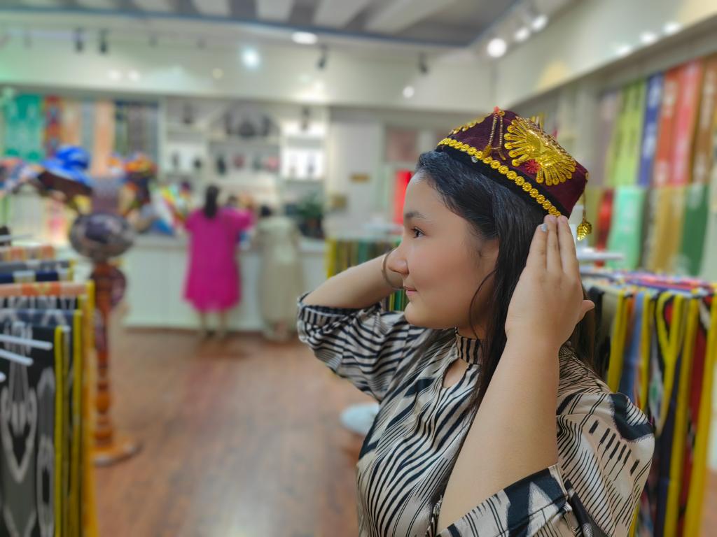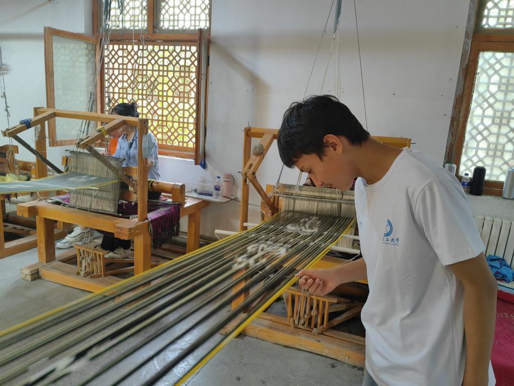 8月2日,实践团队前往和田地区洛浦县吉亚乡吉亚丽人艾特莱斯丝绸有限责任公司进行研学,调研驰名“一带一路”的艾特莱斯丝绸编织、扎染工艺,传承非物质文化遗产。艾特莱斯拥有三千年的悠久历史,其原材料来自新疆优质桑蚕丝,质地细腻、柔软光滑,具有独特精湛的品质制作工艺。团队成员在公司有关负责人的指引下亲身体验了艾特莱斯的制作全过程,了解和体验到艾特莱斯丝绸制作过程的繁琐和艰辛,认识到青年一代要为非遗文化传承和向世界推广贡献一份青春力量。