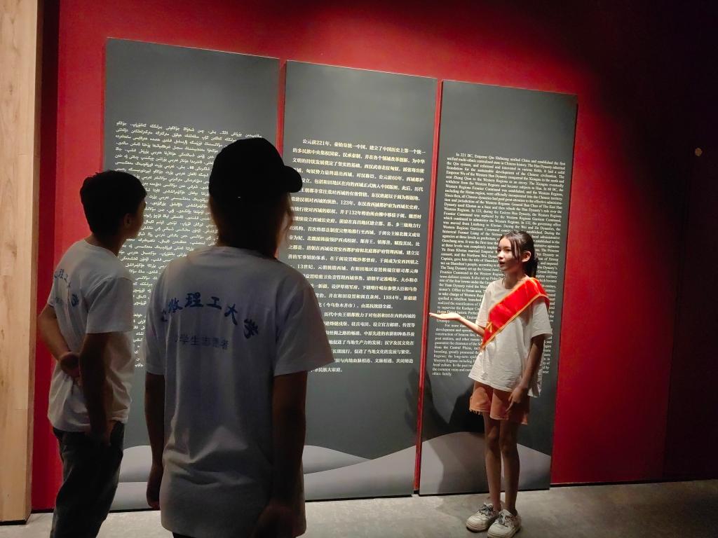 8月1日,实践团队前往和田市博物馆,在馆内“五星出东方利中国—和田历史文化陈列展览”的“巍巍昆仑映华夏”“和合各族舞翩跹”“金玉之乡兴农桑”“绚烂多姿溢华彩”“万方乐奏有于阗”“中华一家有和田”“古道通衢贯中西”等七个单元,丰富的史实资料再现了和田的历史和发展变化,帮助队员们真切地感受到在中国共产党的带领下和田各族人民在政治、经济、文化、生活等方方面面取得的辉煌成就以及民族团结对于区域发展的重要性,进一步加深了对新疆各族人民血脉相连、息息相通、历史交融的了解和认识。