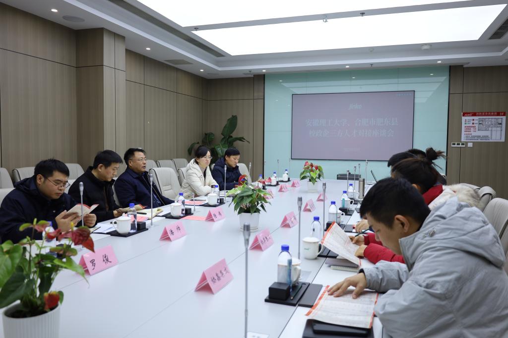 王献余详细了解肥东县及合肥市5家用人单位的发展历程、主营业务、人才需求等情况,认真听取企业对学校人才培养、产教融合、成果转化等方面的意见和建议,并重点介绍了学校的校史校情、办学特色、专业建设、学科发展、科研创新和近年来学校招生就业情况。他指出,开展此次”访企拓岗”活动,了解合肥市各县区和规模以上企业对人才培养的需求,拓宽毕业生就业渠道和资源,搭建校政企合作交流桥梁,是深入学习贯彻习近平总书记关于高校毕业生就业工作的重要指示精神,贯彻落实2024届全国、全省普通高校毕业生就业创业工作视频会议精神和省委、省政府稳就业保就业有关决策部署的重要举措。学校和各学院主动走出去,与政府、行业、企业深度对接,畅通协同就业育人渠道,有利于促进人才与企业的“双向奔赴”,让优秀人才留皖就业和安徽产业发展深度融合。他希望校政企各方今后进一步加强交流合作,充分发挥各自优势,推动形成专业教学改革、就业实习基地建设、科研成果转化、人才留皖发展等方面的共建共享机制,助力区域经济社会高质量发展。