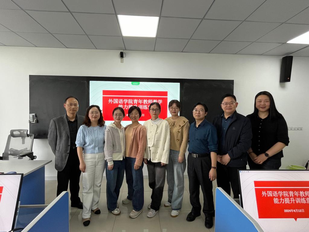 为提升青年教师课堂教学能力和教学竞赛水平,确保外语课程教学质量,4月12日下午,学院在崇智楼语音室A225举办了了青年教师教学能力提升训练营第一期活动。学院院长雷鹏飞,副院长李争、各系室负责人及4位新入职青年教师参加了培训活动。