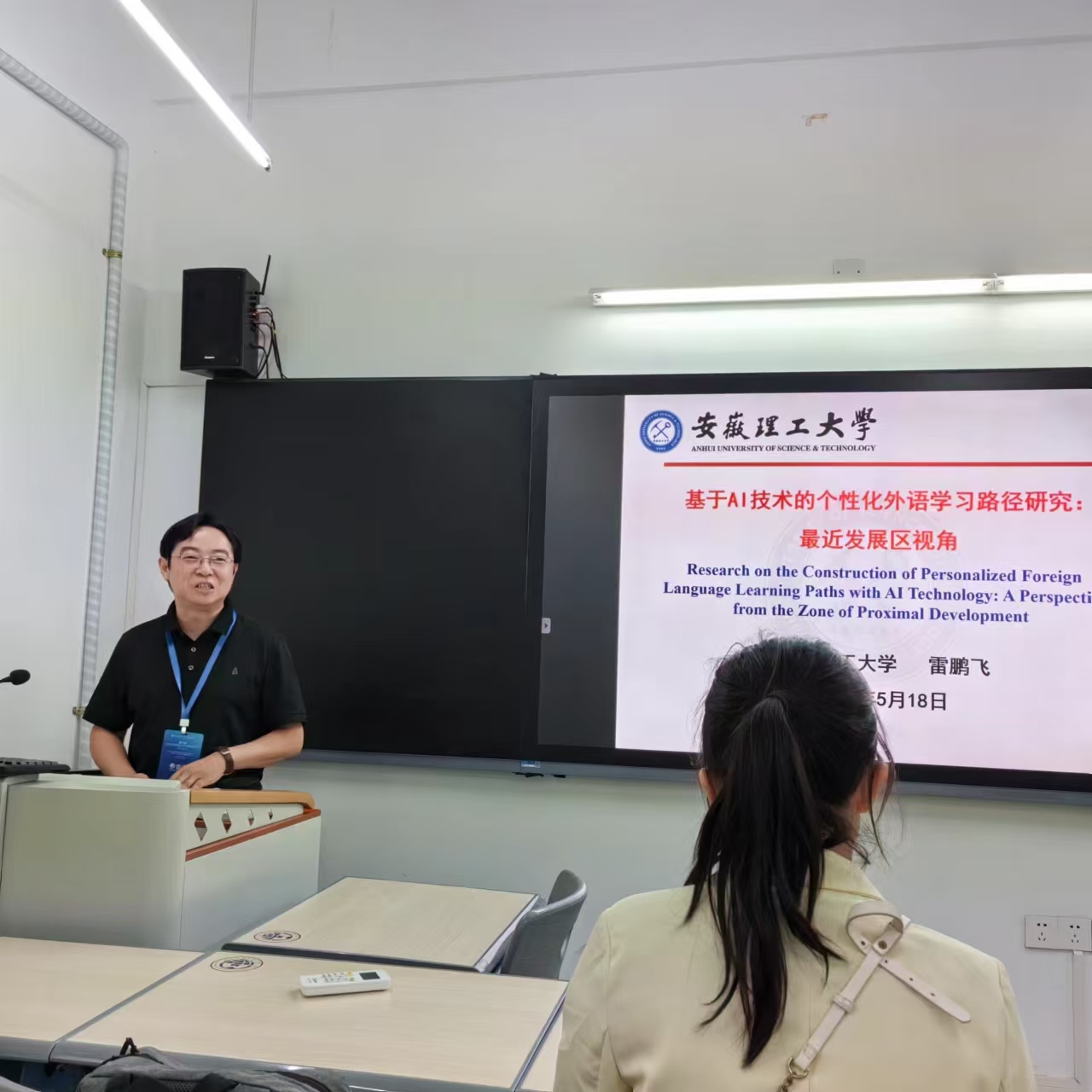 学院雷鹏飞教授应邀主持“社会文化理论视角下外语教育学研究:课堂外语学习与教师发展”的特邀主题论坛,来自长安大学、中南民族大学、江苏大学和武汉科技大学的多位学者在特邀论坛中分享了其最新的高水平学术成果。雷鹏飞还做了“基于AI技术的个性化外语学习路径研究:最近发展区视角”的学术讲座,引起与会专家和同仁的广泛关注。