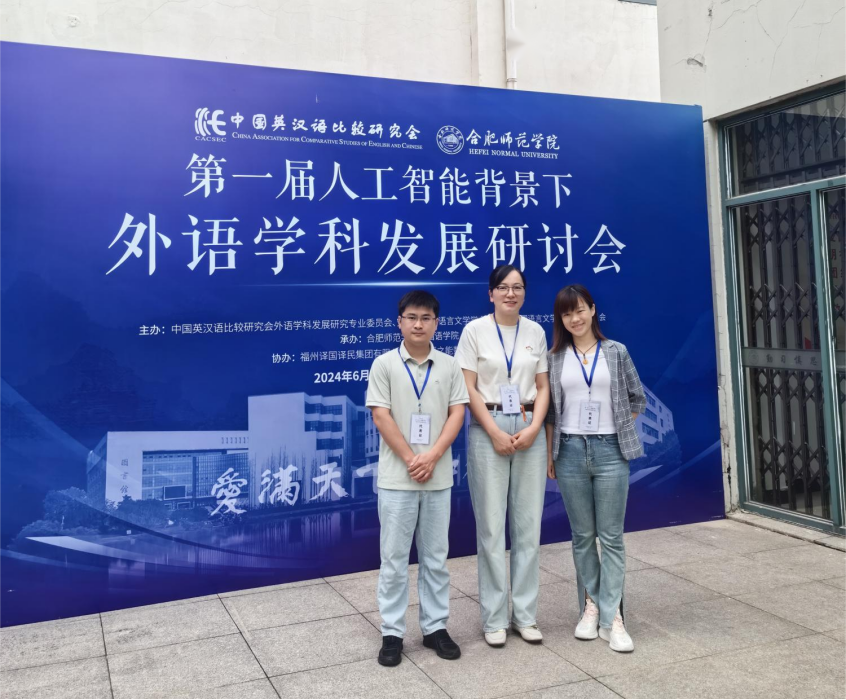 6月15日至16日,第一届人工智能背景下外语学科发展研讨会在安徽合肥召开。此次会议由中国英汉语比较研究会外语学科发展研究专业委员会、安徽省外国语言文学学会、安徽省外国语言文学类专业合作委员会主办,合肥师范学院外国语学院承办,福州译国译民集团有限公司和上海语之能数据科技有限公司协办。我院王化菊、丁永红、邓高胜等三位教师参加研讨会。