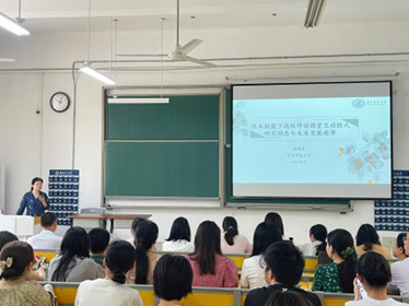 6月20日上午,应科研部和外国语学院邀请,华中科技大学外国语学院徐锦芬教授在明理南106为外院师生带来“技术赋能下高校外语课堂互动模式研究动态与未来发展趋势”的学术讲座,外国语学院师生共计100余人参加,讲座由外国语学院院长雷鹏飞主持。