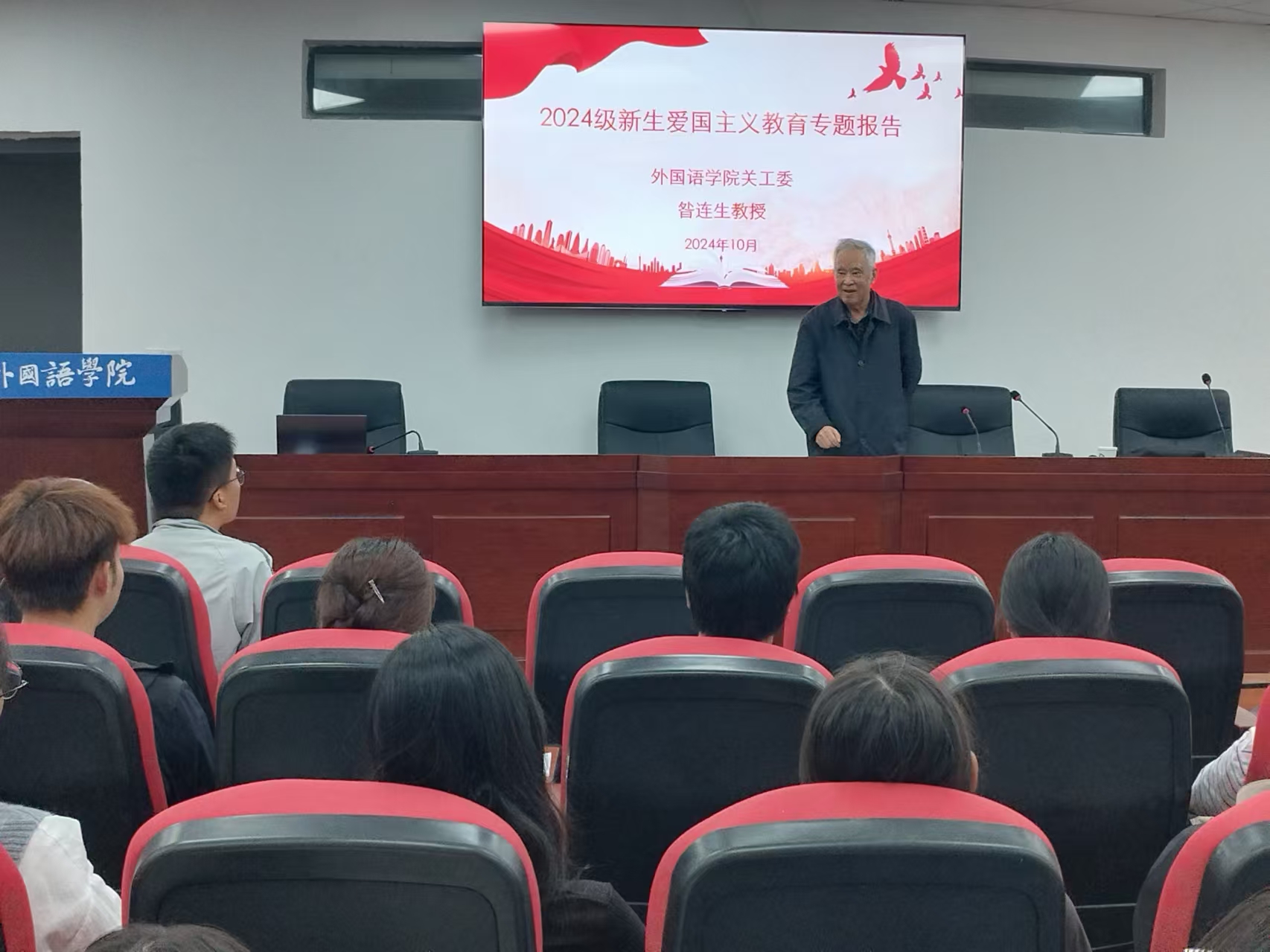 为激发学生的历史使命感和爱党爱国情怀,进一步增强新生爱校荣校精神,10月18日下午,学院特邀安徽理工大学原副校长昝连生教授在崇智楼A231报告厅为2024级新生开展爱国主义教育专题报告会。报告会由学院党委主要负责人主持,2024级全体本科生和研究生新生参加报告会。