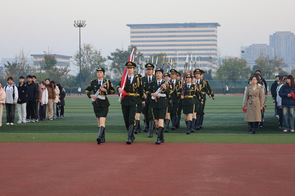 为丰富爱国主义教育形式,厚植学生爱国主义情怀,12月2日早晨,外国语学院在至诚体育场隆重举行升旗仪式。学院领导班子成员、教师代表和学生代表共计600余人参加了升旗仪式。