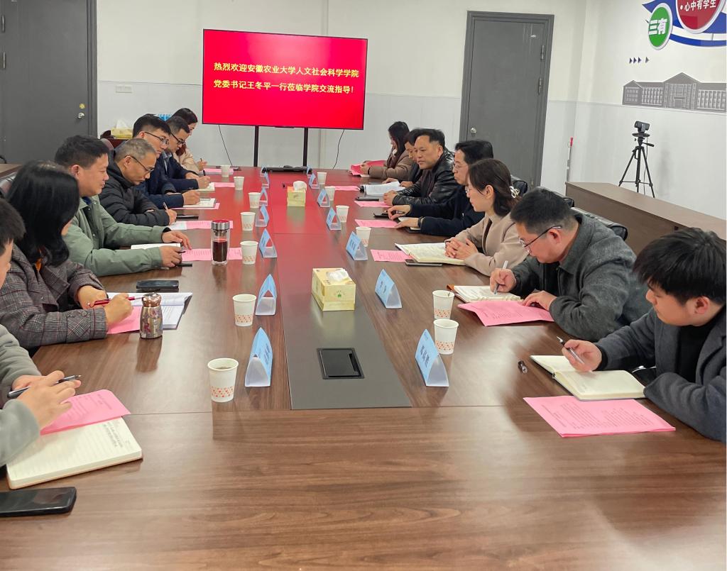 3月13日下午,安徽农业大学人文社会科学学院党委书记王冬平一行七人到外国语学院开展新文科认证工作交流学习。外国语学院、经济与管理学院等相关工作负责人参加会议。