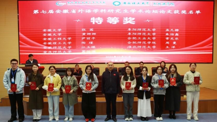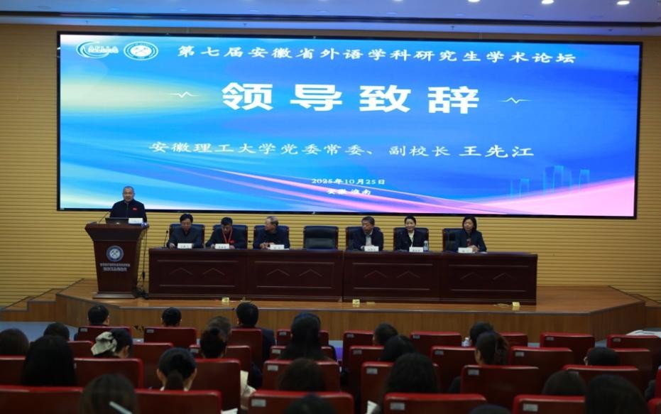 10月24-25日,由安徽省外国语言文学学会、安徽省外国语言文学类专业合作委员会主办,我校外国语学院和安徽理工大学淮南子文化数字化传承与发展重点实验室承办的第七届安徽省外语学科研究生学术论坛在我校成功举行。校党委常委、副校长王先江出席开幕式并致辞。