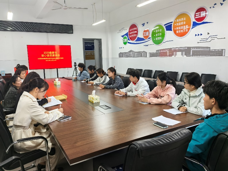 10月24日下午,外国语学院英语系党支部举办“砥砺初心共启新程——新生谈心谈话座谈会”主题党日活动,旨在搭建师生沟通桥梁,助力2025级新生快速适应大学生活,将党建育人与新生成长深度融合。活动由英语系党支部负责人主持,学院关工委相关人员、英语系全体党员教师和2025级各班新生代表参加。