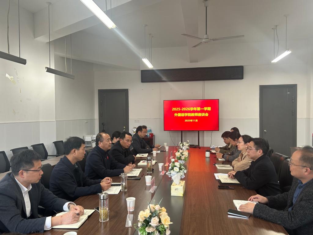 11月20日下午,外国语学院在崇智楼B203会议室召开2025-2026学年第一学期期中教学检查教师座谈会。校党委常委、副校长王先江出席会议,学生处、就业处、校团委、教务处、总务部、现代教育技术中心、双创学院等职能部门负责人和学院领导班子成员、教师代表参加座谈会。