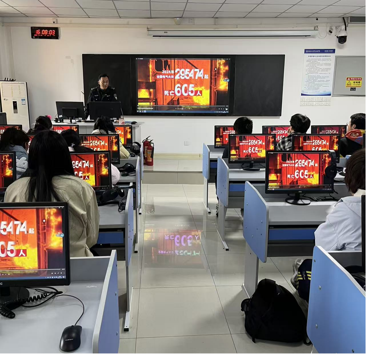 2025年11月是第34个全国消防月,为提升师生消防安全意识,增强火灾预防和应急处理能力,11月21日下午,外国语学院在百川楼外语实验中心举办消防安全知识培训,学校保卫处消防科彭老师做专题报告并组织消防应急演练。