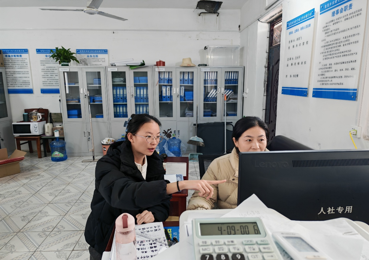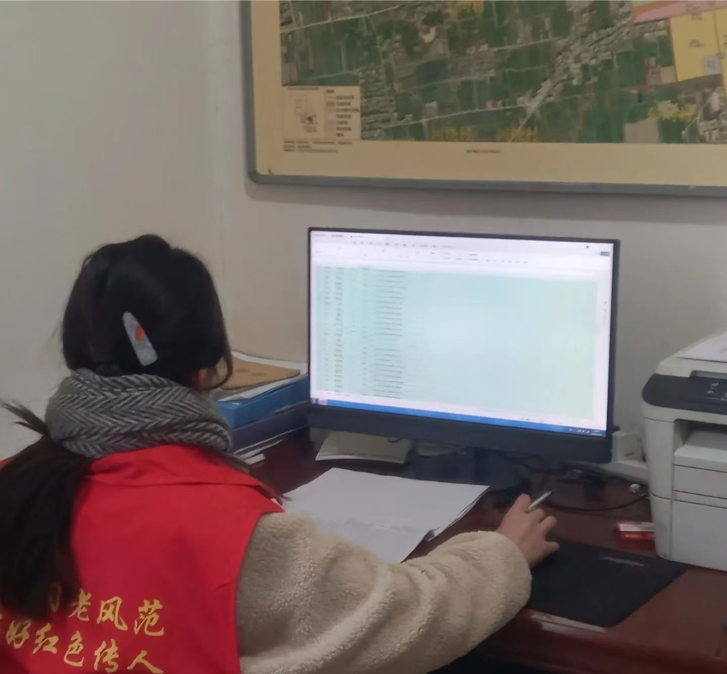 徐丽鑫同学在村委会参与工作