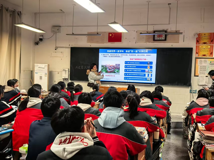 学生化身安理代言人,赴各地高中开展“我为安理代言” 宣讲。杨玉佩、王思涵等同学走进当地中学,讲解学校 “双一流” 建设、校区规划、专业特色等内容,结合自身经历分享备考选校建议,解答升学就业疑问,让更多高中生了解安理,为学校招生宣传凝聚青春力量。