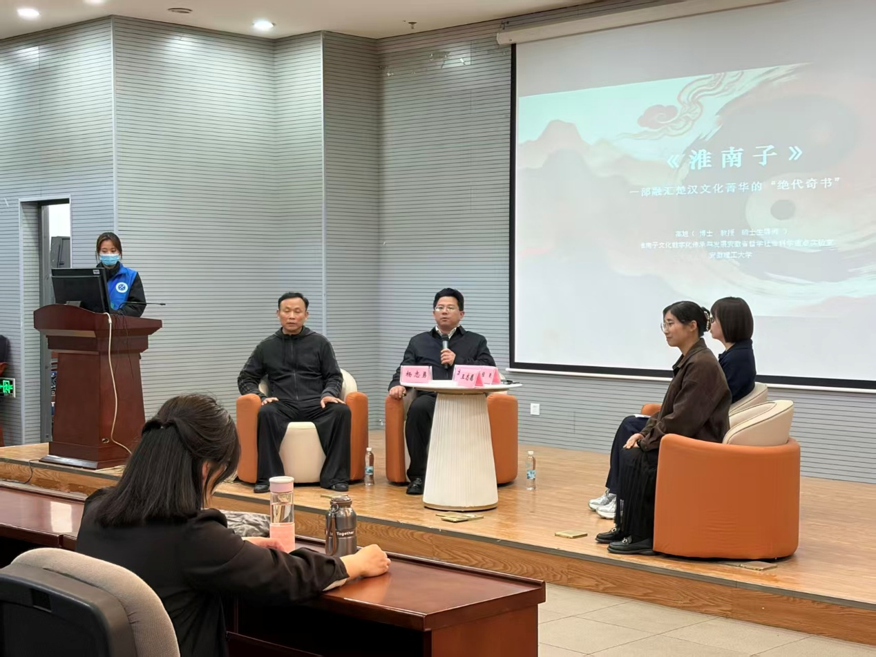 4月23日世界读书日,校“一站式”学生社区读书月活动暨第十三届“梧桐树下”大学生读书文化节系列活动之经典研读·文化创新·知行践悟——《淮南子》主题读书分享会在图书馆三楼报告厅举行。