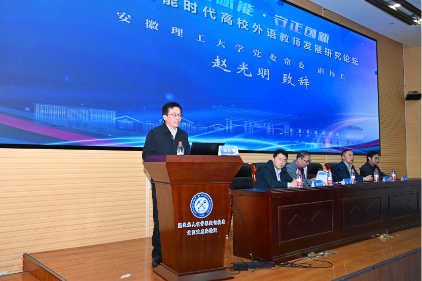 为深入推进国家“教育强国”战略,培养“扎根本土、读懂中国,胸怀天下、沟通世界”的时代新人,深化外语教育教学改革,4月25-26日,由校教师发展中心主办、外国语学院承办的人工智能时代高校外语教师发展研究论坛在我校成功举行,校党委常委、副校长赵光明教授出席开幕式并致辞。
