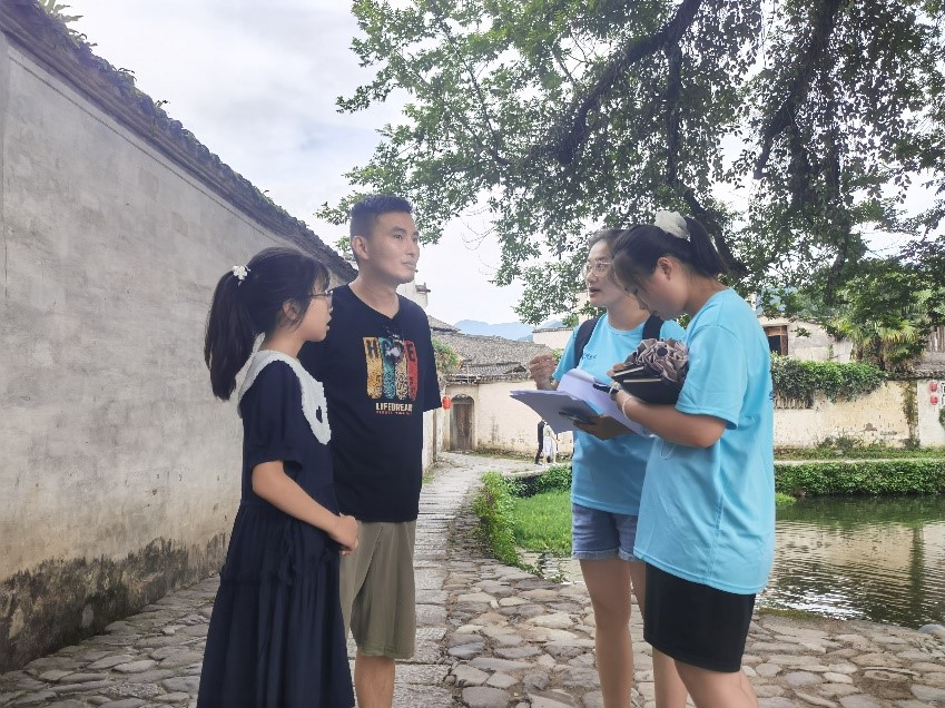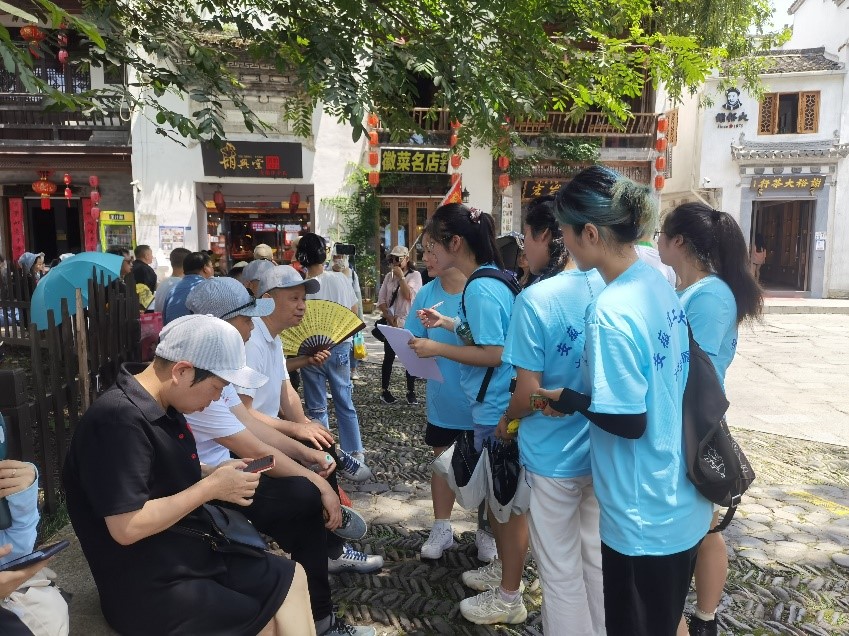 6月25日-26日,两支实践团队成员分别前往黟县、歙县两地实地探寻徽州地区发展的流量密码,助力乡村振兴。通过查阅文献资料、访谈当地住户、村干部等渠道,队员们欣喜地得知黄山市推行“旅游+”“生态+”等模式,深度盘活传统村落资源,推进农业、林业与旅游、教育、文化、康养等产业深度融合,大力发展休闲度假、旅游观光、养生养老、农耕体验、农业创意、乡村手工艺等产业,打造一批繁荣农村、富裕农民的新业态,赋能美丽乡村建设,同时也深切地察觉到徽文化的知名度和影响力有待提升,民众对其尚未形成清晰认知,徽文化仍需在信息化时代中保持其独特性,并积极融合移动媒体来发扬传播。