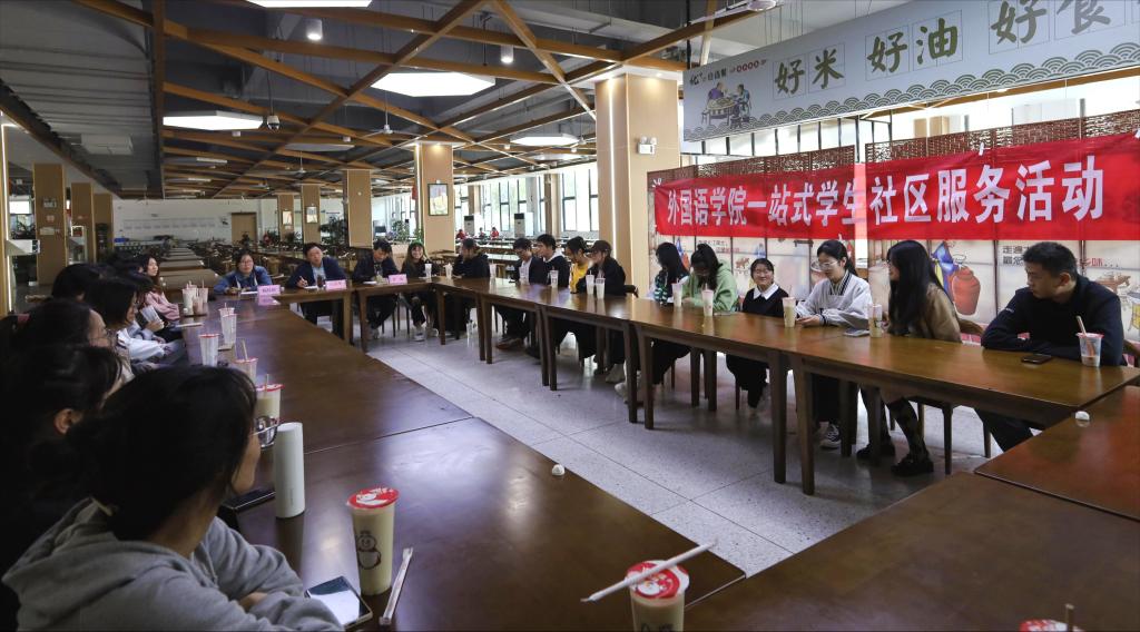 11月9日下午,学院英语2021级4班29位同学人人捧着一杯温暖的热奶茶,在义苑食堂一楼参加外国语学院“一站式”学生社区师生茶叙活动。