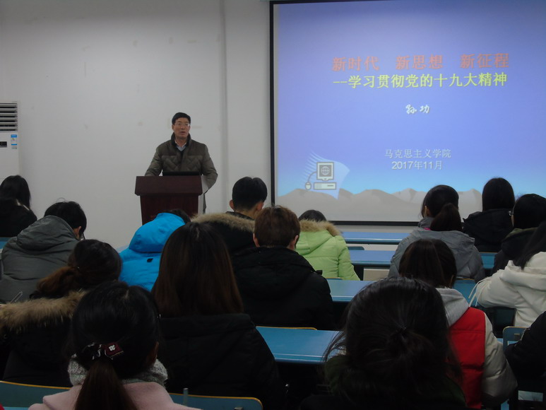 12月15日下午,外国语学院邀请马克思主义学院副院长孙功教授在崇智楼B235教室作了题为“新时代,新思想,新征程——学习贯彻党的十九大精神”的报告会。学院全体党员和部分入党积极分子听取了报告。