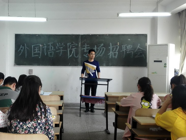 4月14日上午,外国语学院在西区行政楼七楼教室举办专场招聘会,上海世邦机器有限公司应邀前来招聘毕业生。2016届英语专业20名学生参加了本场招聘会。