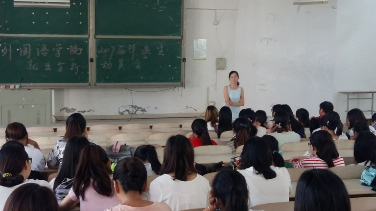 9月2日下午,外国语学院在医教303教室召开2017届毕业生动员会。学院党委副书记程秀霞对就业的基本形势、应试技巧和要求等方面进行了讲解。