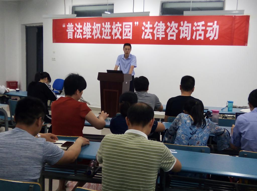 7月2日,为更好地维护师生权益,开展“七五”普法教育活动,外国语学院分工会邀请淮南市律师协会副会长杨全好律师走进校园,为近50名师生提供法律咨询服务。