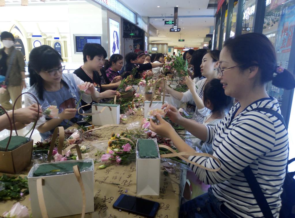 5月12日下午,外国语学院工会组织近30名教职工在淮南市新华书店新世界店举行插花知识讲座和比赛活动。